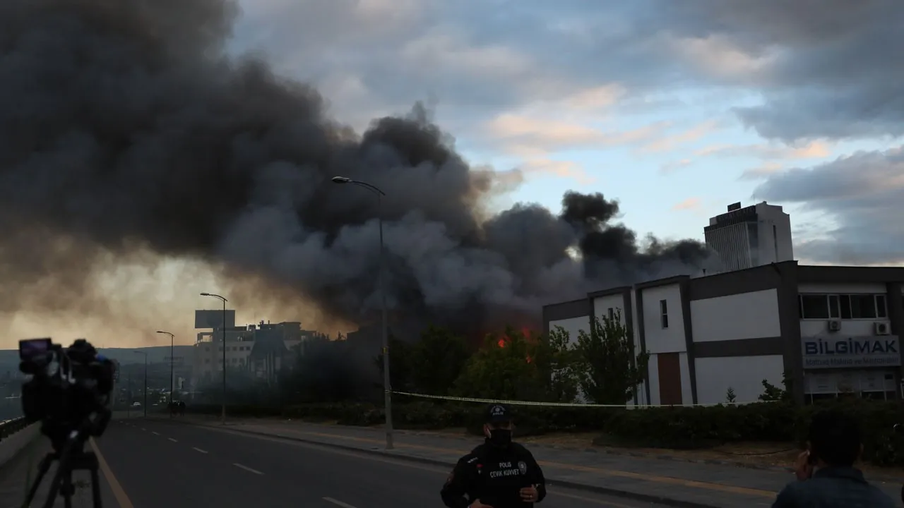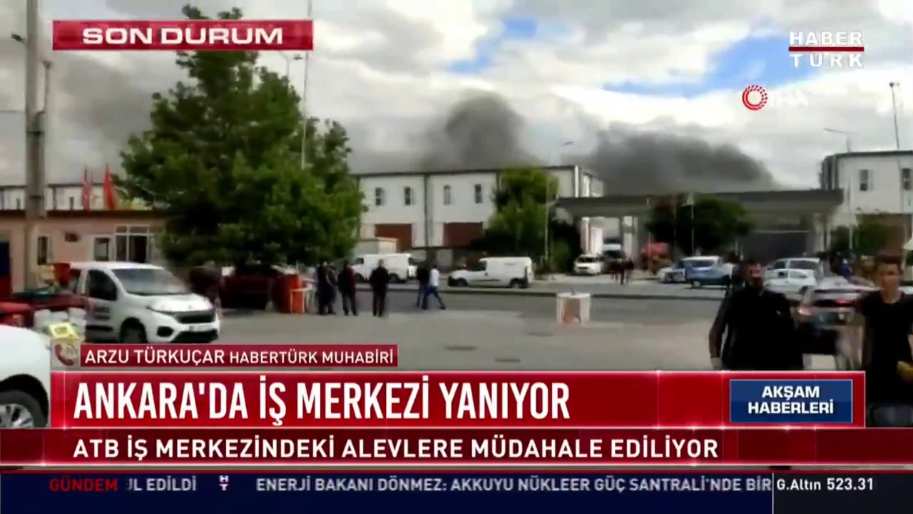 Ankara'nın yenimahalle ilçesinde bulunan ankara ticaret borsası (atb) i̇ş merkezi'nin alt katındaki dükkanlarda yangın çıktı. Atb i̇ş merkezinin e bloğunda yer alan kimyasal üretim merkezinde, henüz belirlenemeyen nedenle yangın çıktı. .mahallesi'nde bulunan atb i̇ş merkezi'nde çıkan ve merkezdeki diğer bloklara da sıçrayan yangın kontrol altına alındı. Başkan, son duruma ilişkin yetkililerden bilgi aldı. Bilkent tarafından yoğun bir duman bulutu olarak gözlemlenmeye devam etmektedir.